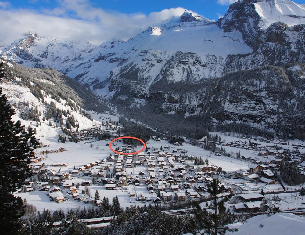 Das Haus ist 10 Fussminuten vom Bahnhof, 5 Min. von Dorfkern, Schwimmbad, Eishalle und Curling, Kletterwand und Talstation Bergbahn zum Öeschinensee entfernt. Das Bergdorf bietet ein reichhaltiges Angebot an Restaurants, Bars, etc., das ganze Spektrum von einfachem Essen bis zum Gourmetmenü.